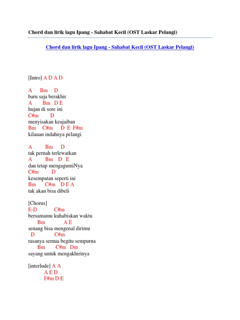 Lirik Lagu Laskar Pelangi Ulisesrkc